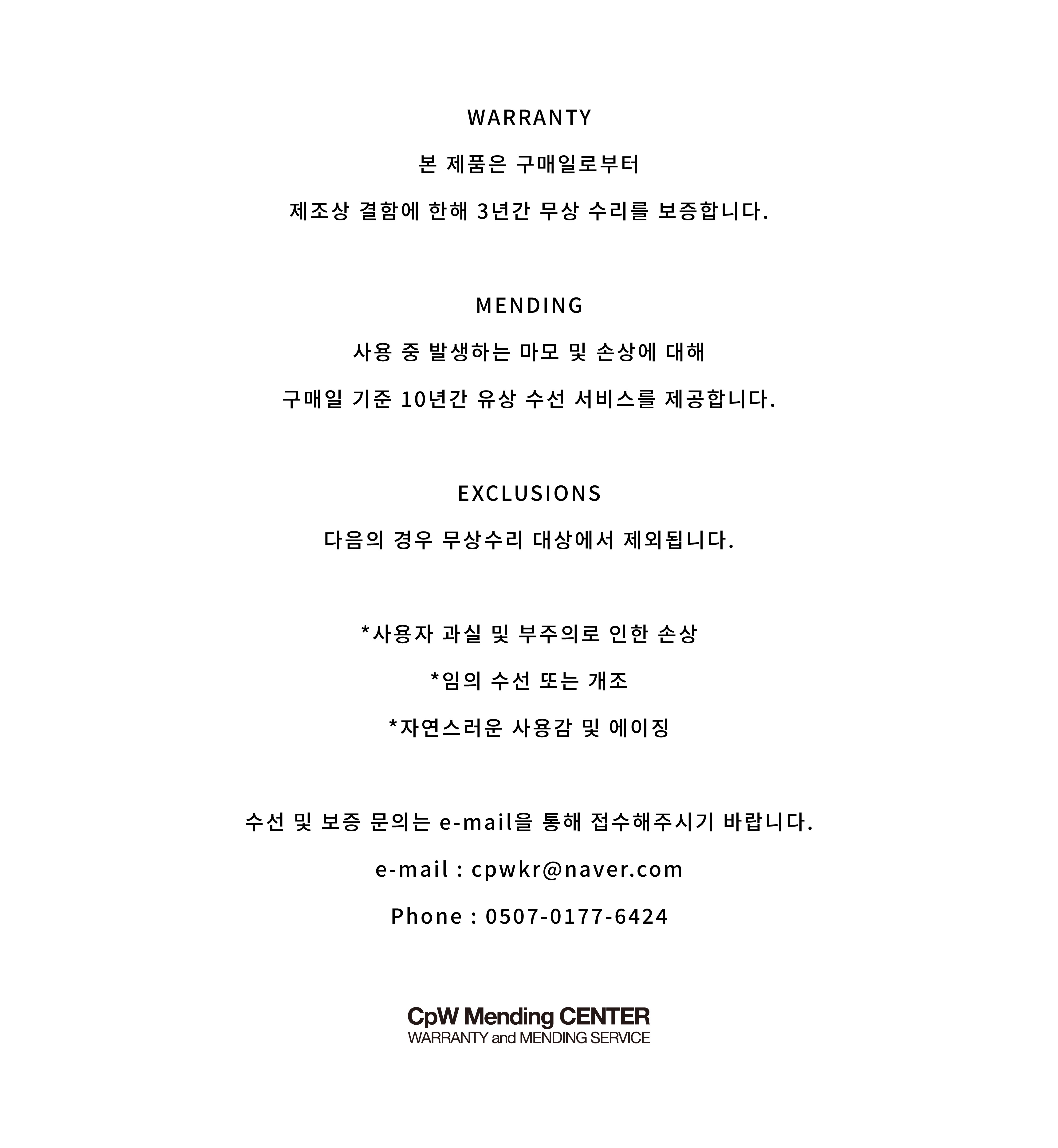 교환, 반품은 수령 후 1-3일의 처리 기간이 소요됩니다.